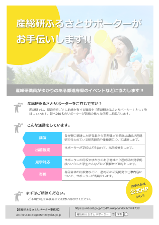 「産総研ふるさとサポーター」の活動を通じて、皆様に産総研をより身近に感じていただければ幸いです。